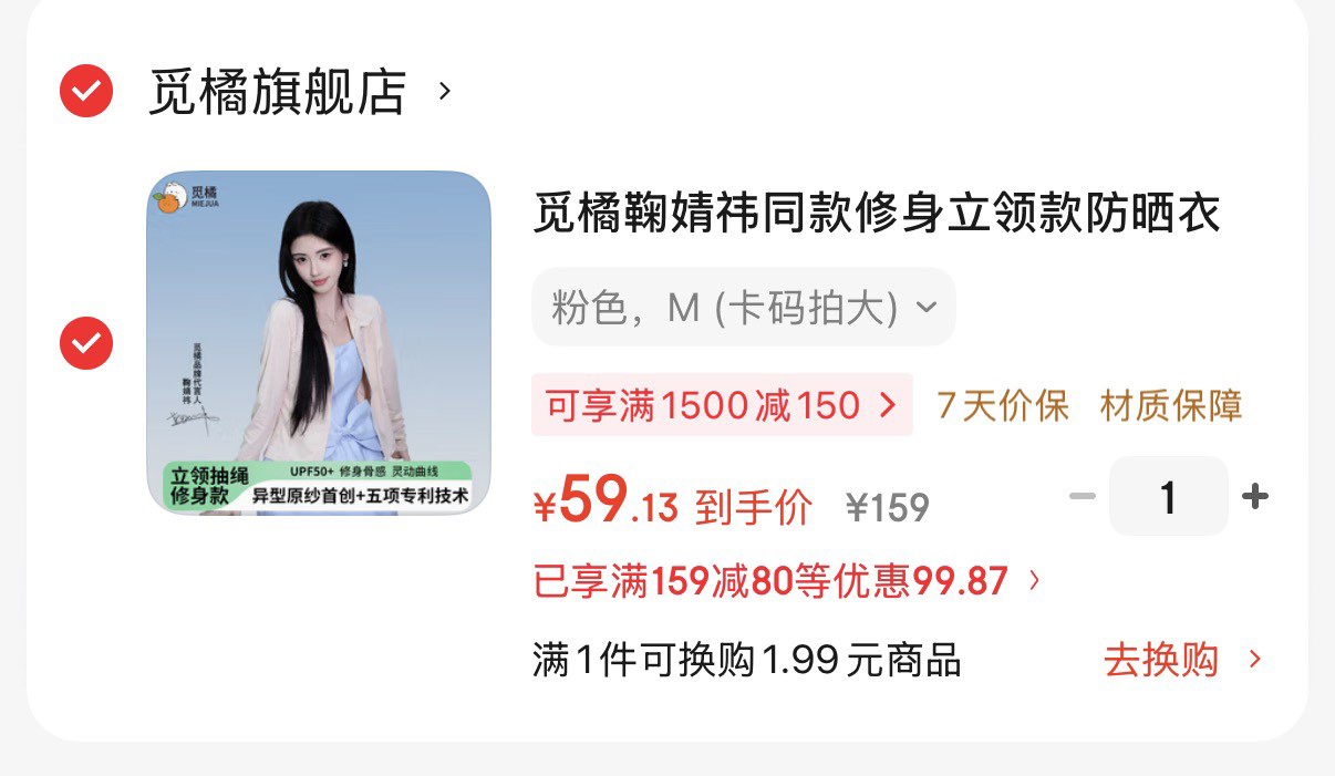 觅橘鞠婧祎同窾防晒衣 59元