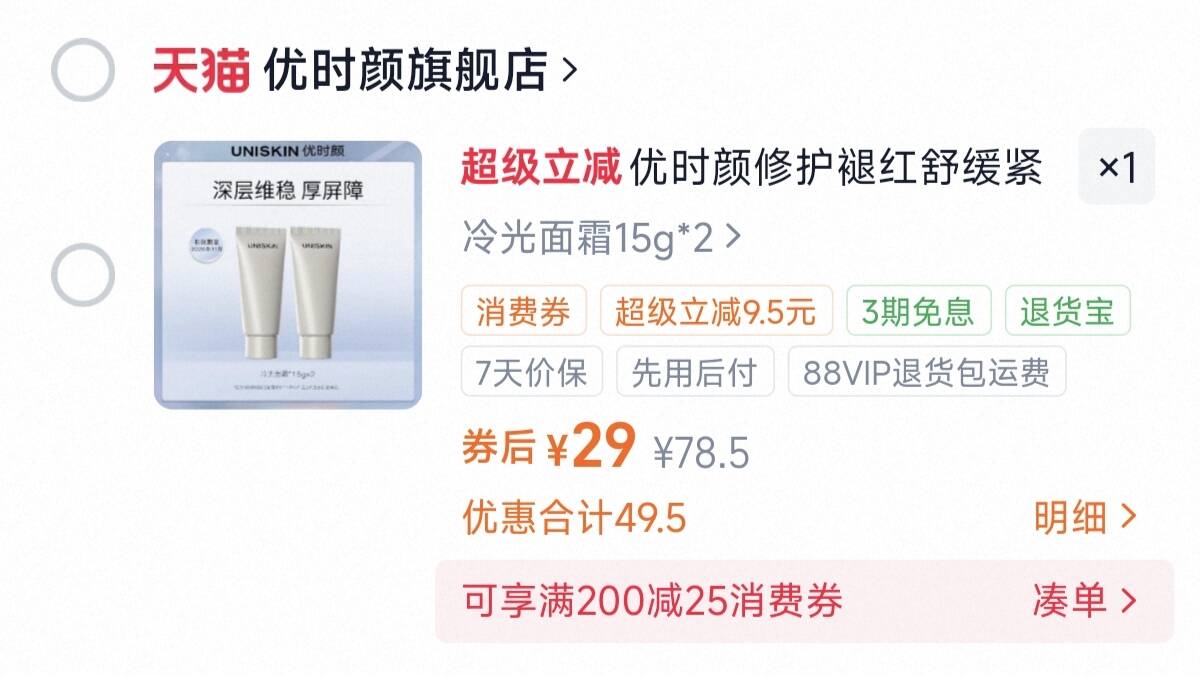 优时颜冷光面霜15g*2元29 共30g 正装卖的超贵好单发报员2026年03月23日 20:150举报 优时颜冷光面霜15g*2元29共30g!正装卖的超贵~https://m.tb.cn/h.i6l3tYc复制文案