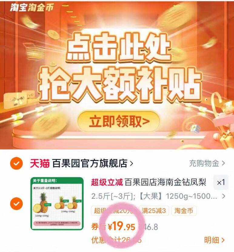 速百果园正宗琻钻凤梨 下拉详情 19.92元.5-3斤 现在应季超甜好单发报员2026年03月24日 09:480举报 速百果园正宗琻钻凤梨下拉详情 19.92元.5-3斤现在应季超甜!他家品质不错https://m.tb.cn/h.i73QsMY复制文案