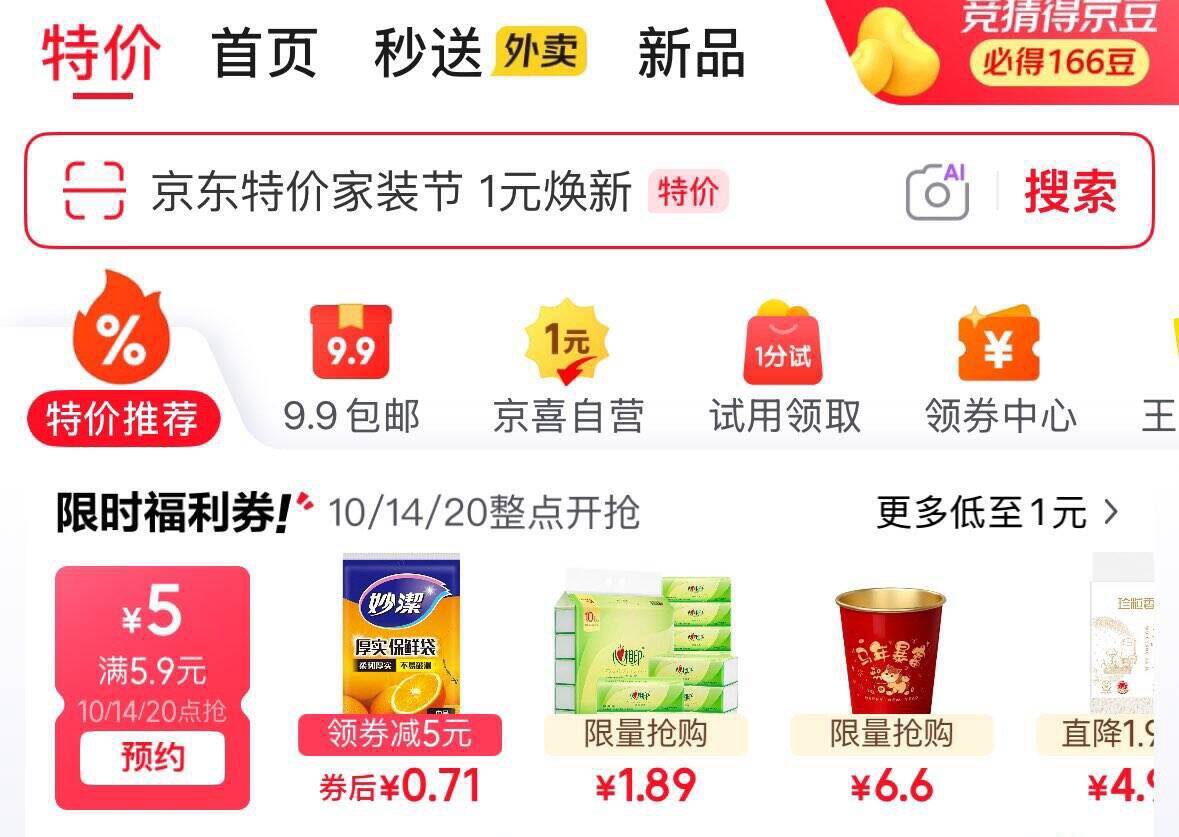 10点 京东首页-特价领5.9-5券