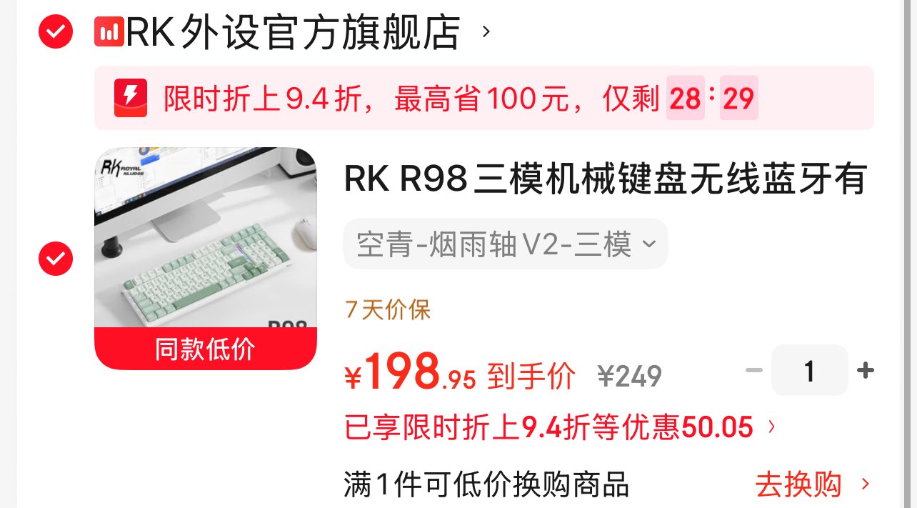 RK R98空青 烟雨轴V2三模 198 进店铺弹限时折上9.4折好单发报员2026年03月24日 11:570举报 RK R98空青烟雨轴V2三模【198】https://u.jd.com/cO68mX6(进店铺弹限时折上9.4折)复制文案