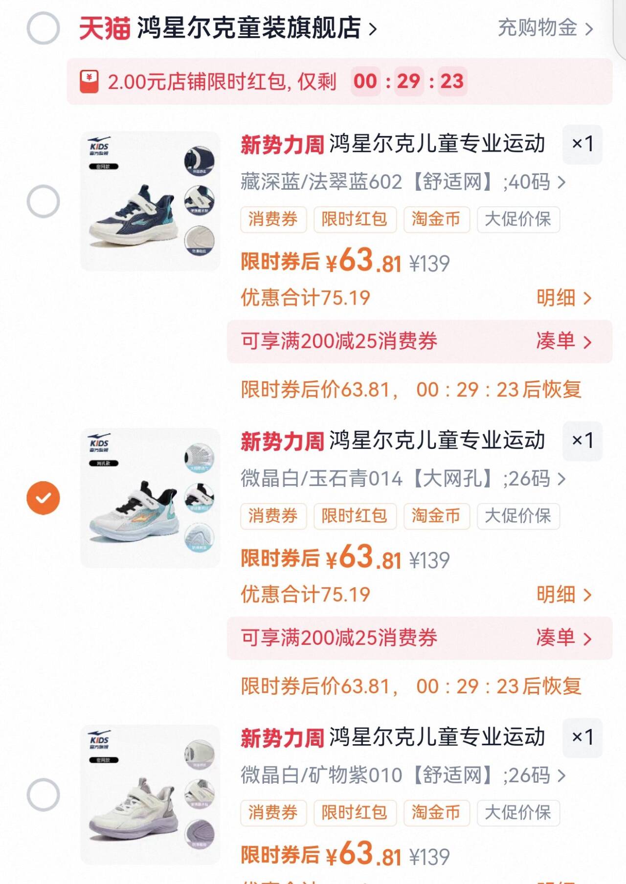 鸿星尔克童鞋运动鞋 鸣鸥2 天降礼唫65.8元