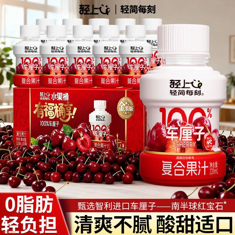 自营 轻上 车厘子100%复合果汁220ml*10瓶