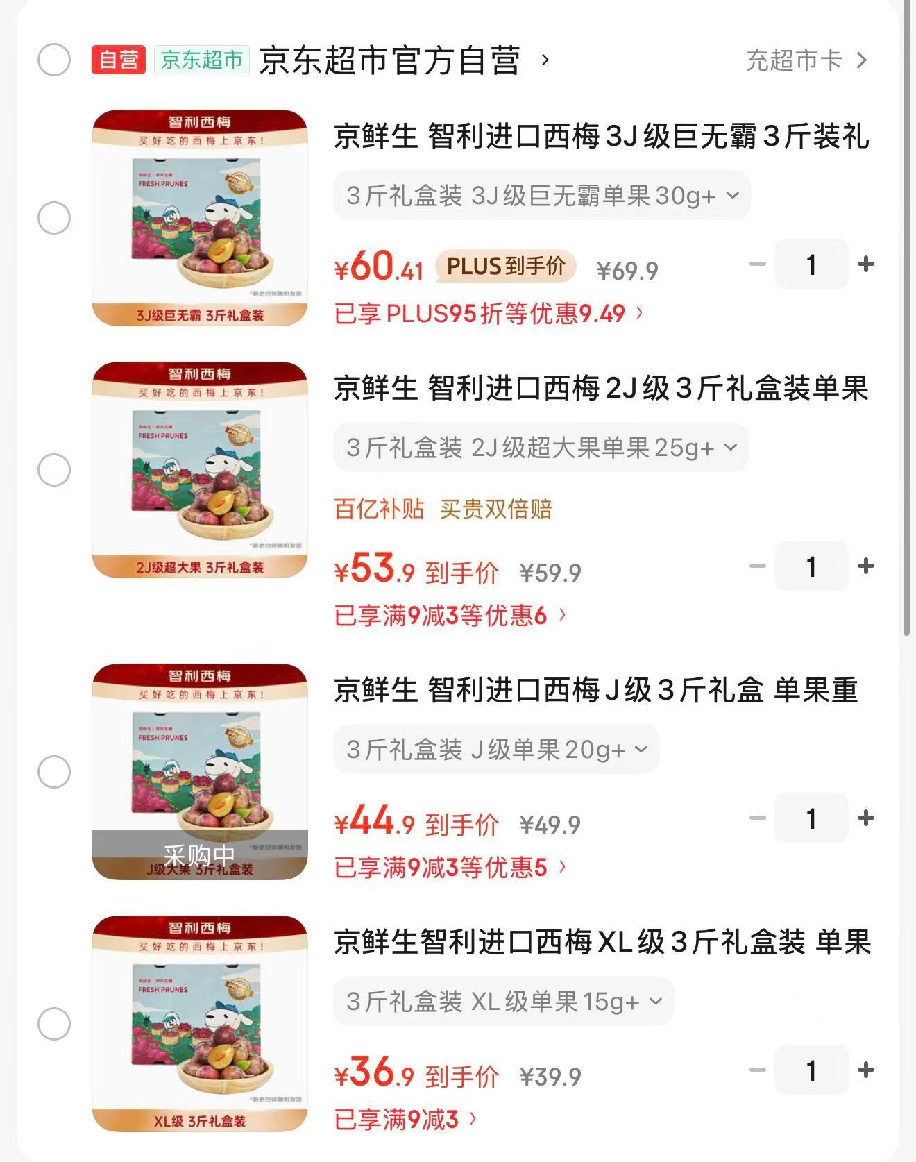 京鲜生 智利进口西梅2J级3斤装【56.9】https://u.jd.com/c1ObX7A