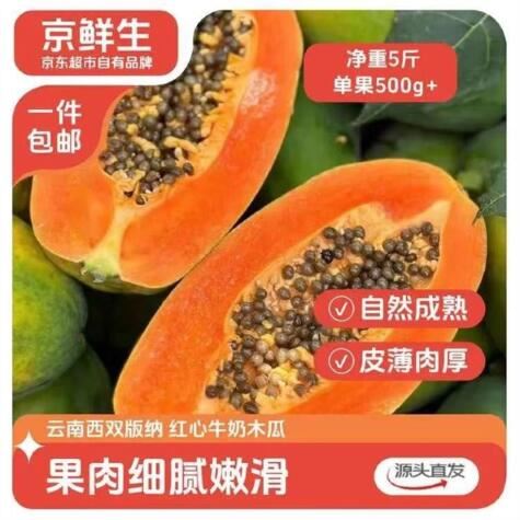 【自营包.邮】京鲜生 云南红心牛奶木瓜 净重5斤
