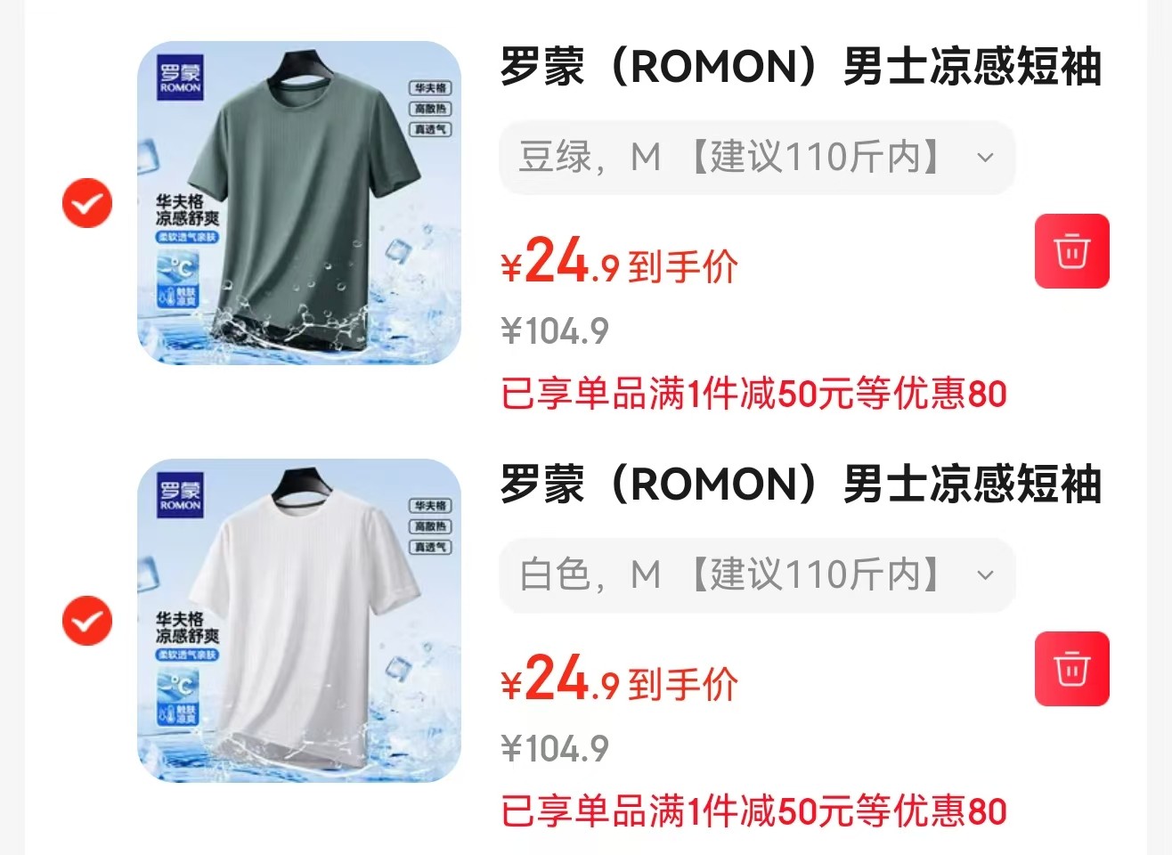 罗蒙 短袖,任选2件不同款【49.8】https://u.jd.com/cgOlKxE
