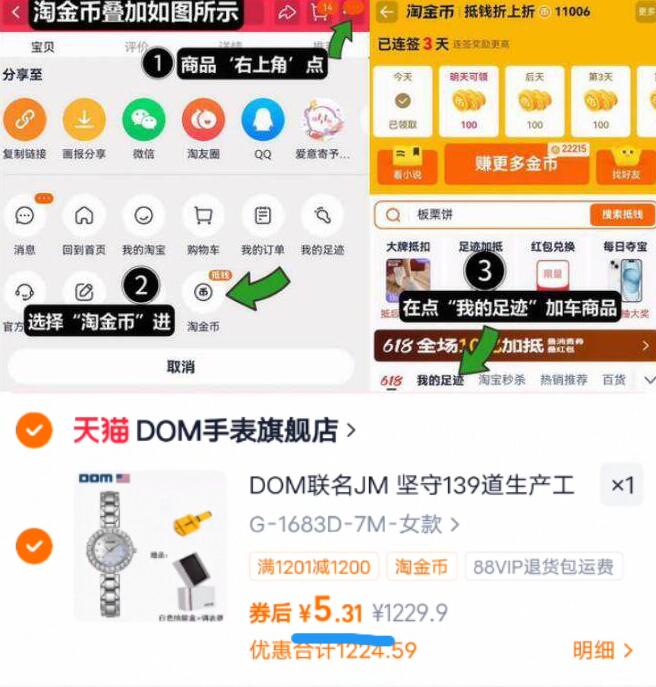 漏.圿锁 拍下5.3元速度 DOM手表 ①如图点右上角3个点好单发报员2026年03月24日 18:060举报 漏.圿锁,叠24淘金币拍下5.3元速度!DOM手表①如图点右上角3个点,选淘金币②选我的足迹-找到商品拍下https://m.tb.cn/h.ih5MKiy复制文案