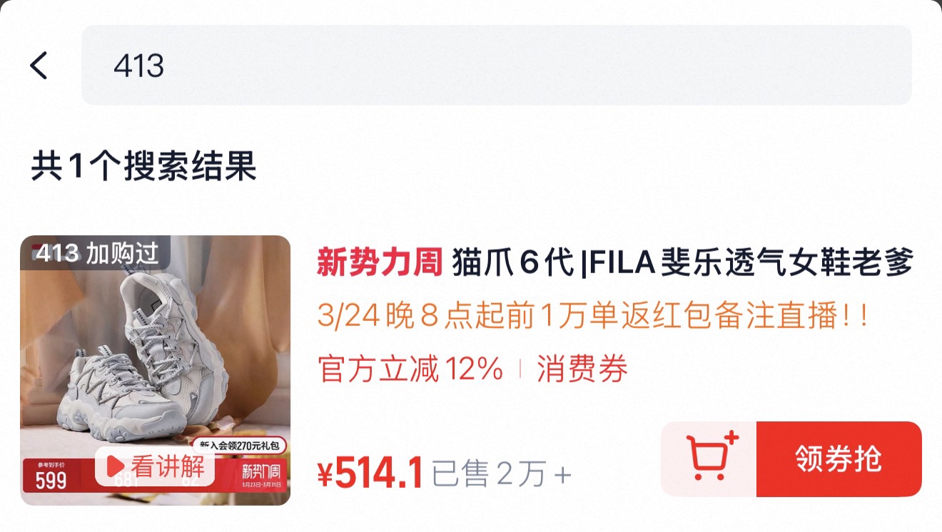 3进直播间https://e.tb.cn/h.iS9KhBA购物袋搜“413”加购1件