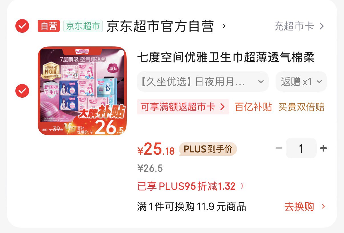 七度空间卫生巾组合40片 25.2元好单发报员2026年03月24日 23:190举报 七度空间卫生巾组合40片Plus拍下25.2元 返5超市卡https://u.jd.com/cGaXdz0 复制文案