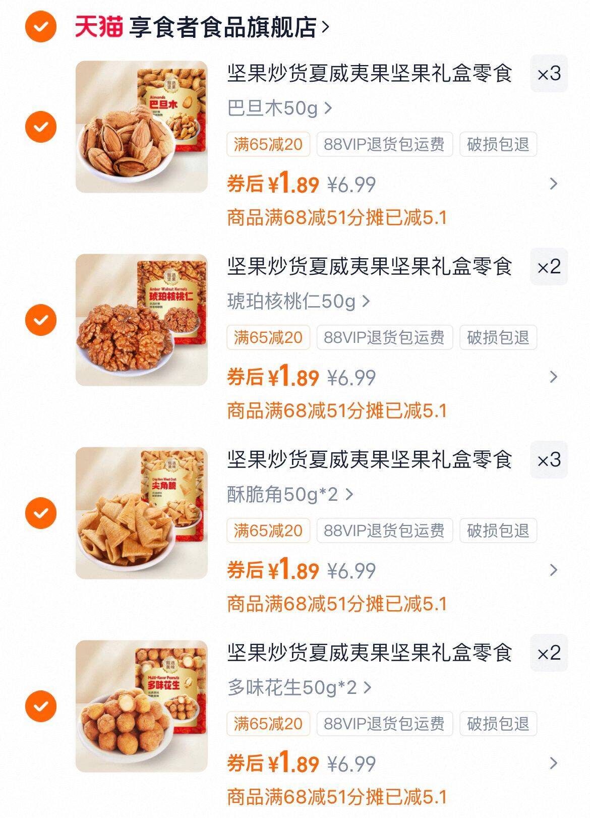 坚果炒货夏威夷果零食任选10件 1.8元