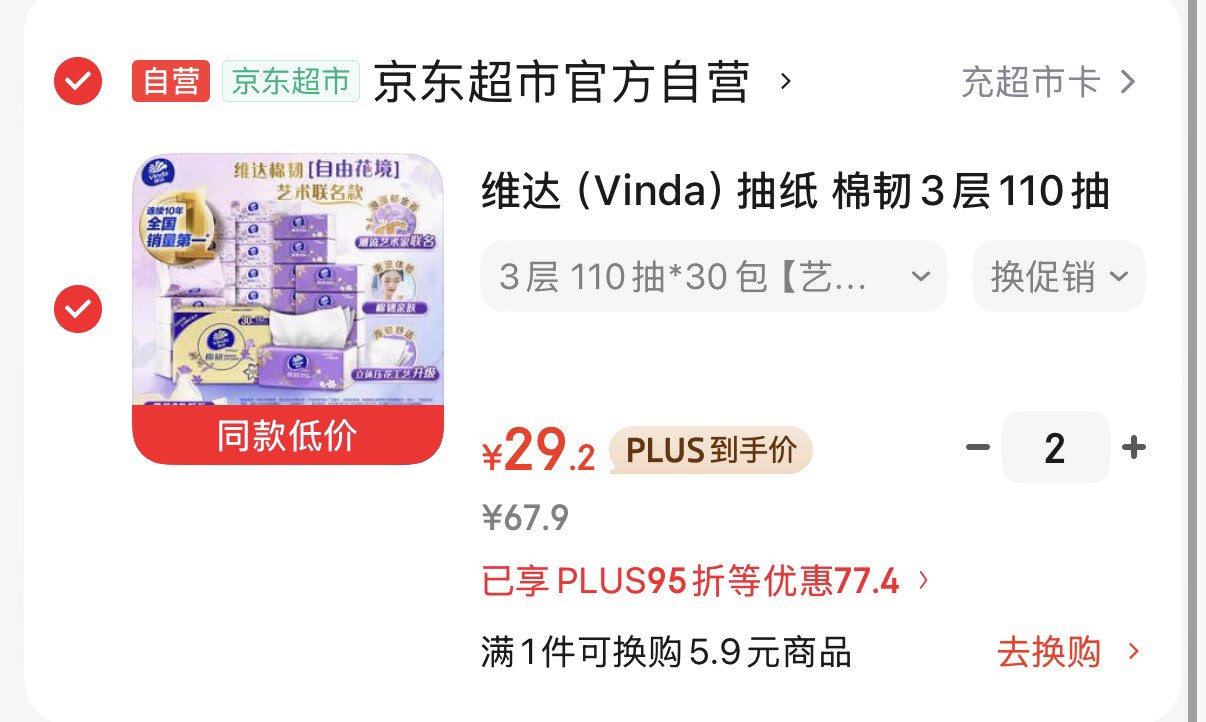 维达棉韧3层110抽*30包 自由花境艺术限定款 2 件 58.4 元好单发报员2026年03月25日 00:190举报 领8折券https://u.jd.com/cGaHrHJ 维达棉韧3层110抽*30包 自由花境艺术限定款Plus拍2件58.4元 折0.97/包https://u.jd.com/c61IwSN复制文案