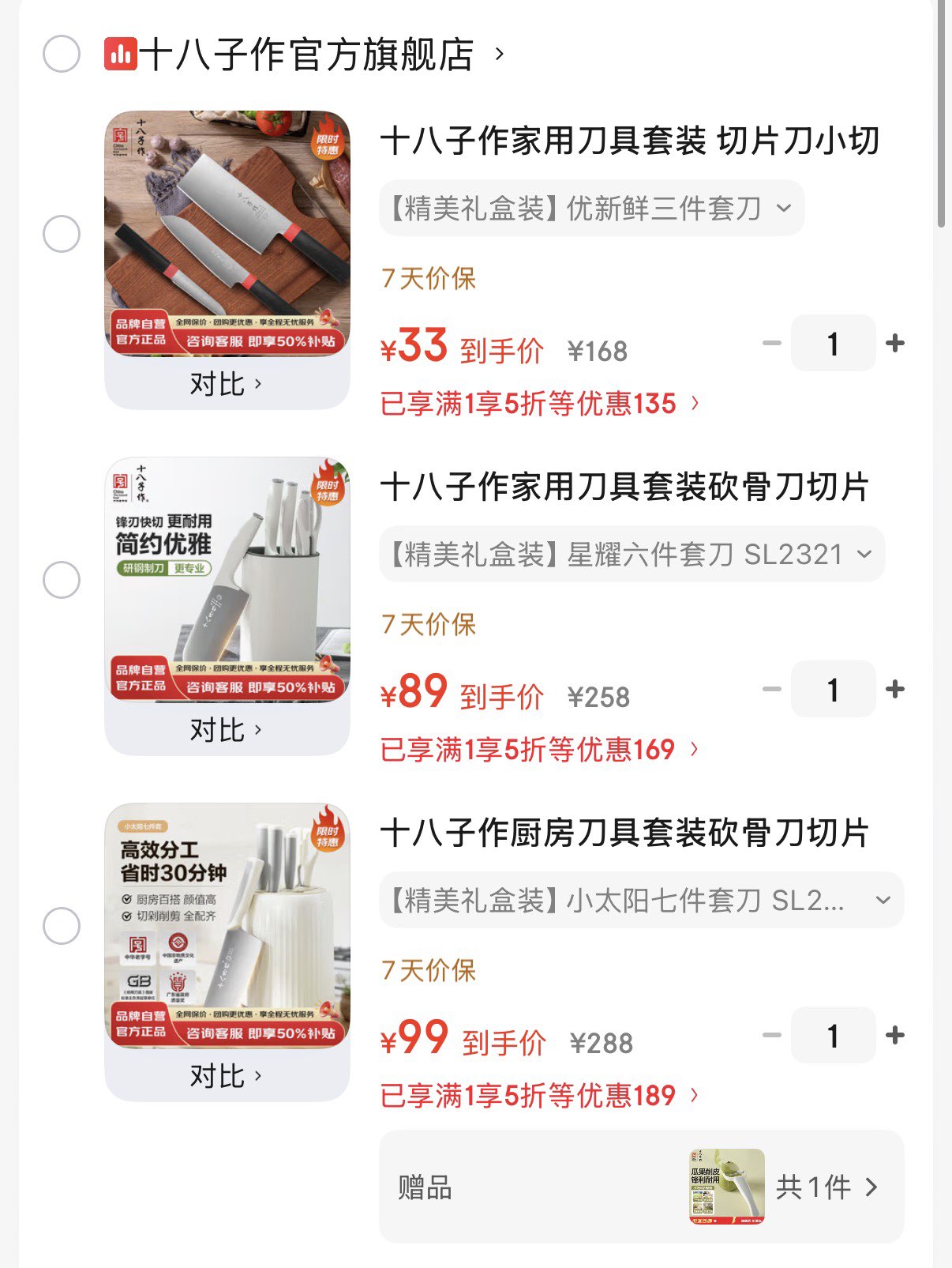 厨房刀具三件套 33元