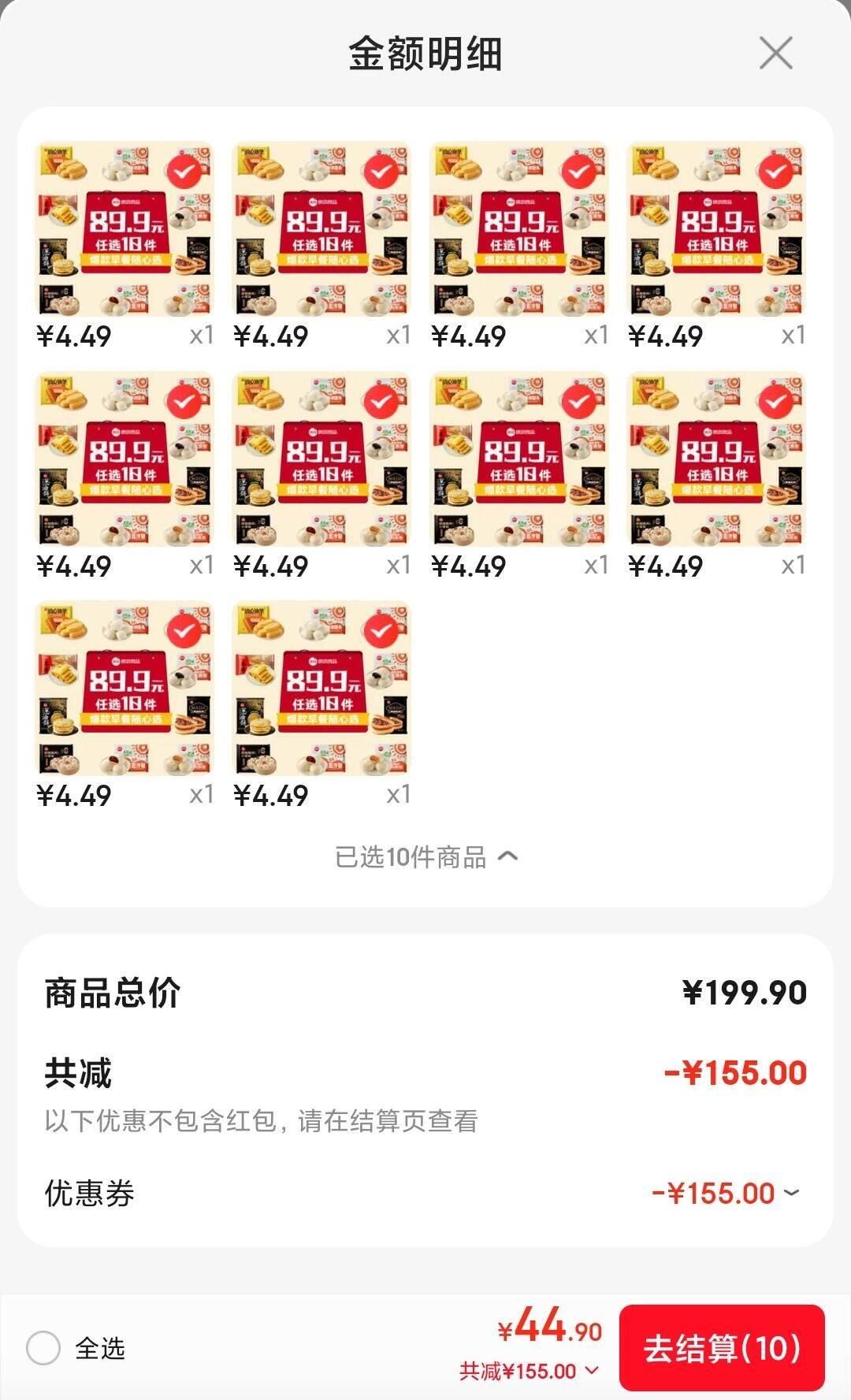 思念爆款早餐面点组合 任选10件 44.9元好单发报员2026年04月01日 09:300举报 4.49元/件!早餐任选!思念 爆款早餐面点组合https://u.jd.com/cDfudwy 有饭团、馅饼、烧麦、油条、小笼包等任选10件44.9元 超多可选!复制文案