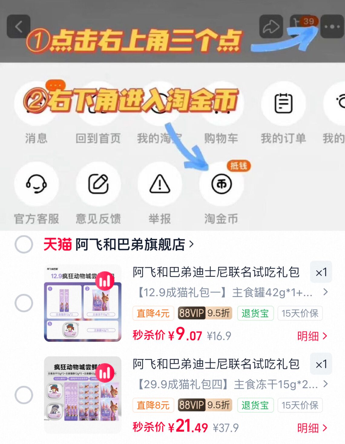 右上角[ ]-点"淘金币