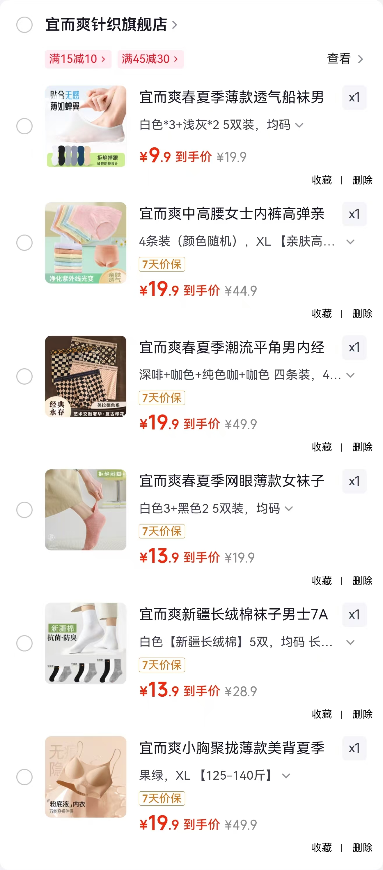 宜而爽 春夏季薄款透气船袜5双装【9.9】