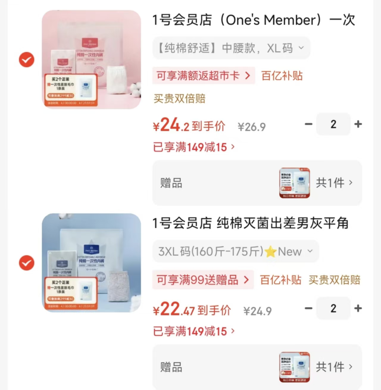 1号会员店 一次性内裤好价