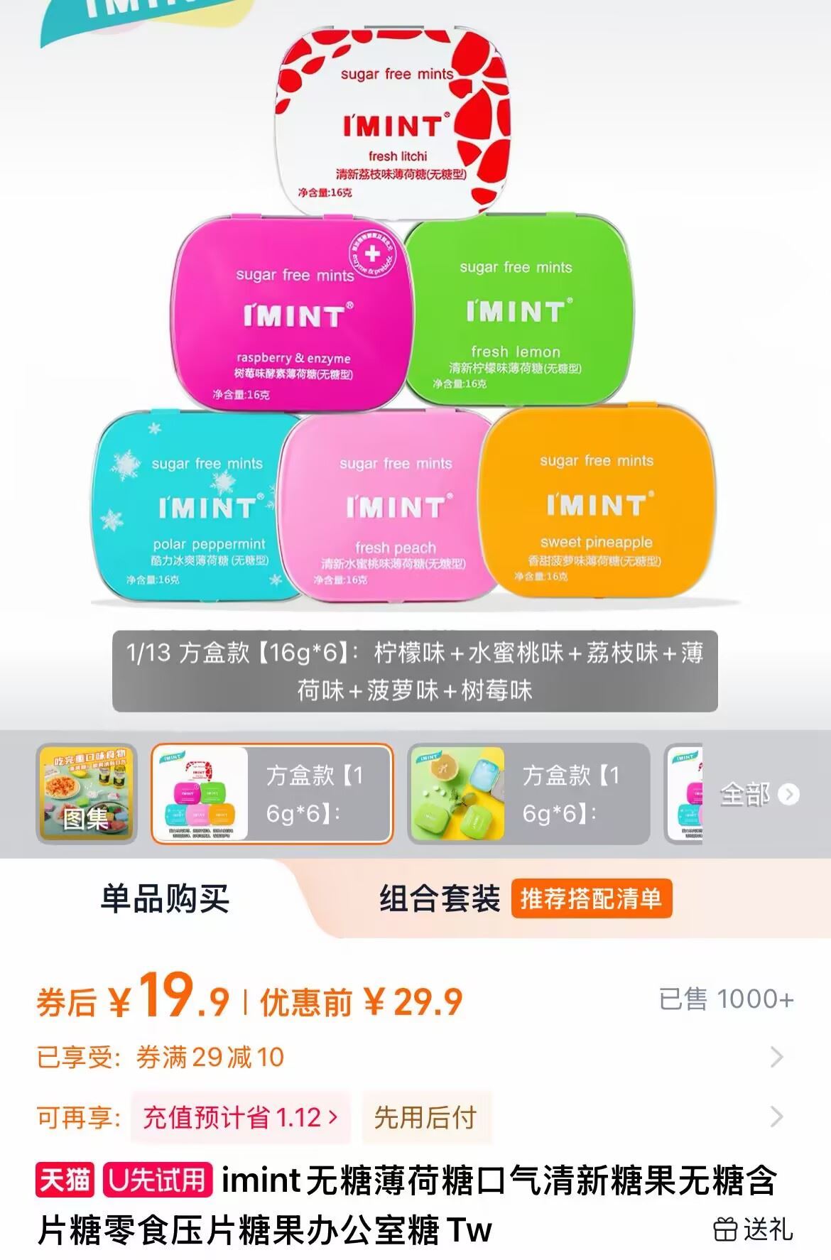 IMINT水果无糖薄荷糖 赠1盒 19.9元好单发报员2026年04月01日 15:590举报 19.9元贈1盒!含贈 7盒【IMINT】水果无糖薄荷糖约会/应酬/通勤 装到包包里解决gin尬!说话都是香香的-https://m.tb.cn/h.iQ4l53B复制文案