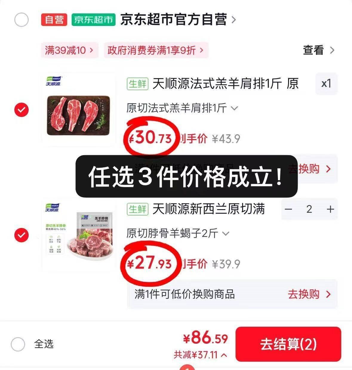 天顺源原切羔羊脖骨2斤 83.7元起,天顺源原切羔羊肩排1斤 83.7元起好单发报员2026年04月01日 18:280举报 ——天顺源生鲜发車——天顺源 原切羔羊脖骨2斤https://u.jd.com/cgRyGlo 天顺源 原切羔羊肩排1斤https://u.jd.com/cORZov1 任选3件83.7元起自营包U*低至13.9/斤 怎么做都好吃复制文案