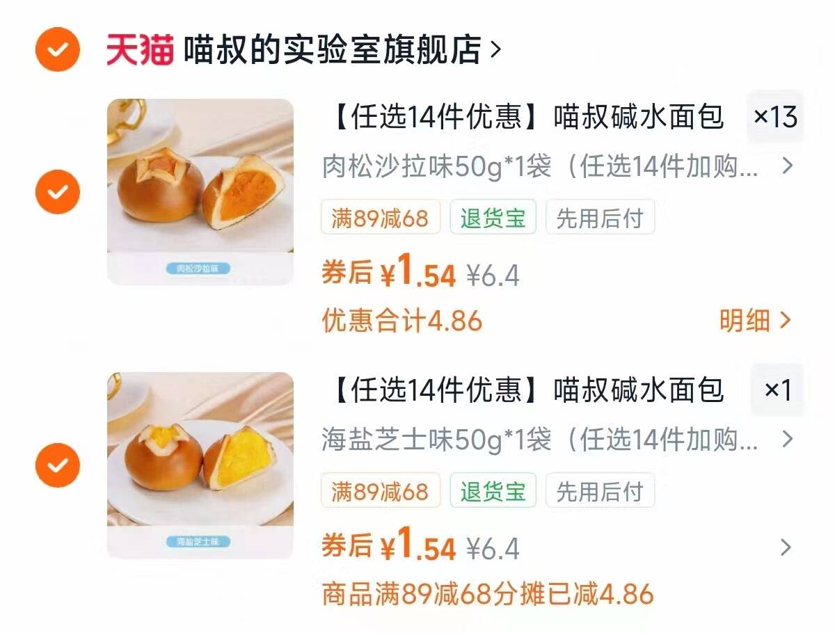 速喵叔碱水面包合集 多歀任选14件1.5元/件