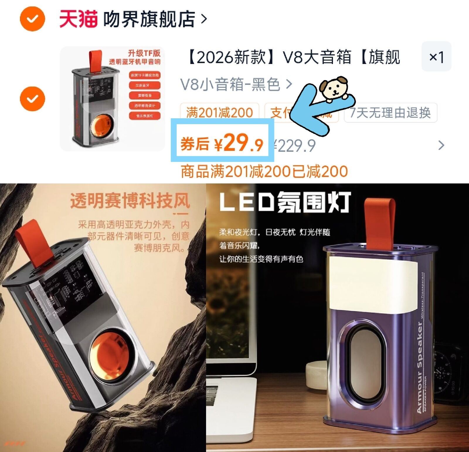 V8旗舰顶配大音箱升级版 29.9元 好单发报员 2026年04月02日 10:24 0 举报 29.9元bug锁 性价比拉满 拍后两个选项价格成立---V8旗舰顶配大音箱升级版复制这条信息打开手机陶宝https://m.tb.cn/h.iknTXiF支持蓝牙5.0,连接贼稳定 复制文案