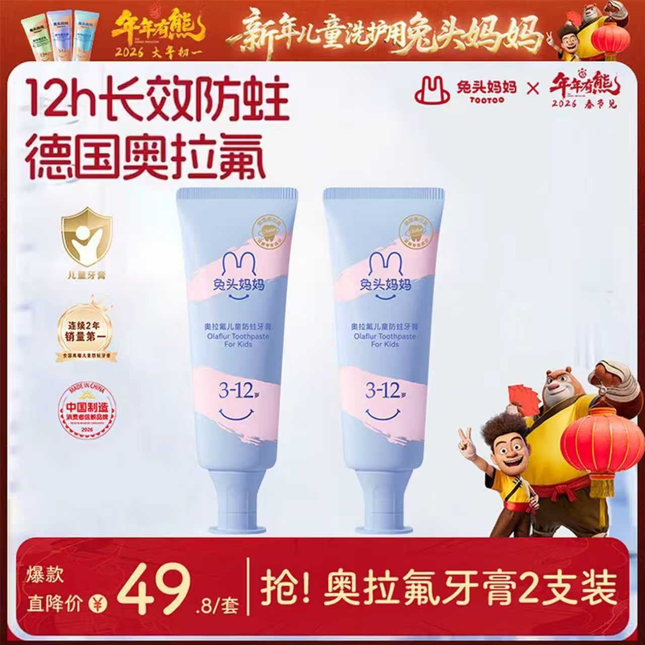 兔头妈妈奥拉氟牙膏50g*2支 29.9元好单发报员2026年04月02日 11:180举报 兔头妈妈 奥拉氟牙膏50g*2支領https://y-03.cn/WGXN8Y拍https://u.jd.com/caV3eEs 29.9元自营包U,氟中贵族复制文案