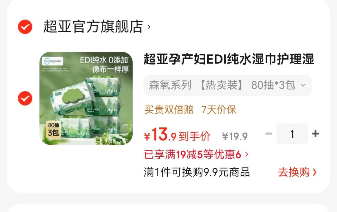 超亚森氧系列纯水湿巾加厚加大80抽*3包 14.9元好单发报员2026年04月02日 11:290举报 超亚纯水湿巾加厚加大森氧系列80抽*3包14.9元https://u.jd.com/caVioH0复制文案