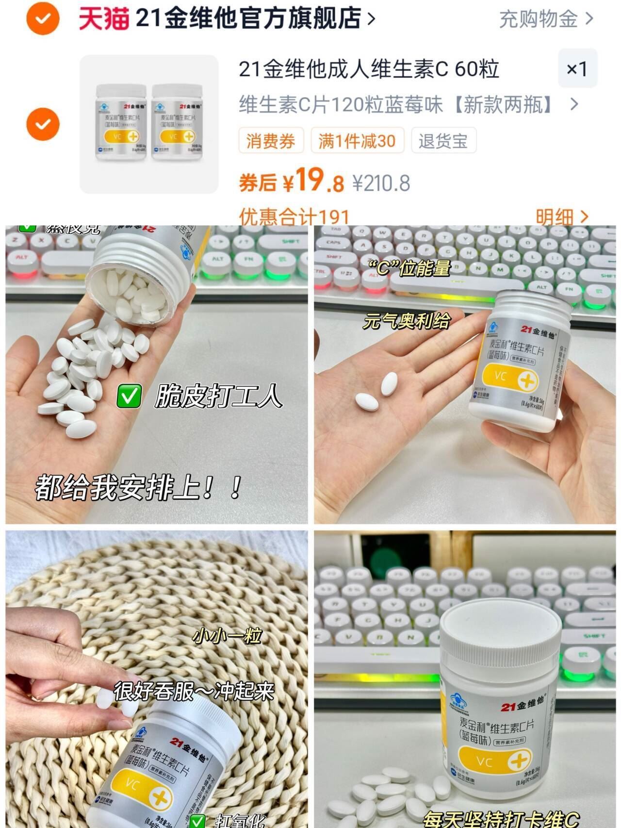 【21金维他】蓝莓味维C片60粒*2瓶 19.8元好单发报员2026年04月02日 13:080举报 19.8元! 60粒*2瓶 【21金维他】蓝莓味维C片天选内服~好状态轻松拿捏酸酸甜甜蓝莓味 像吃糖1样-https://m.tb.cn/h.i9nGYZa复制文案