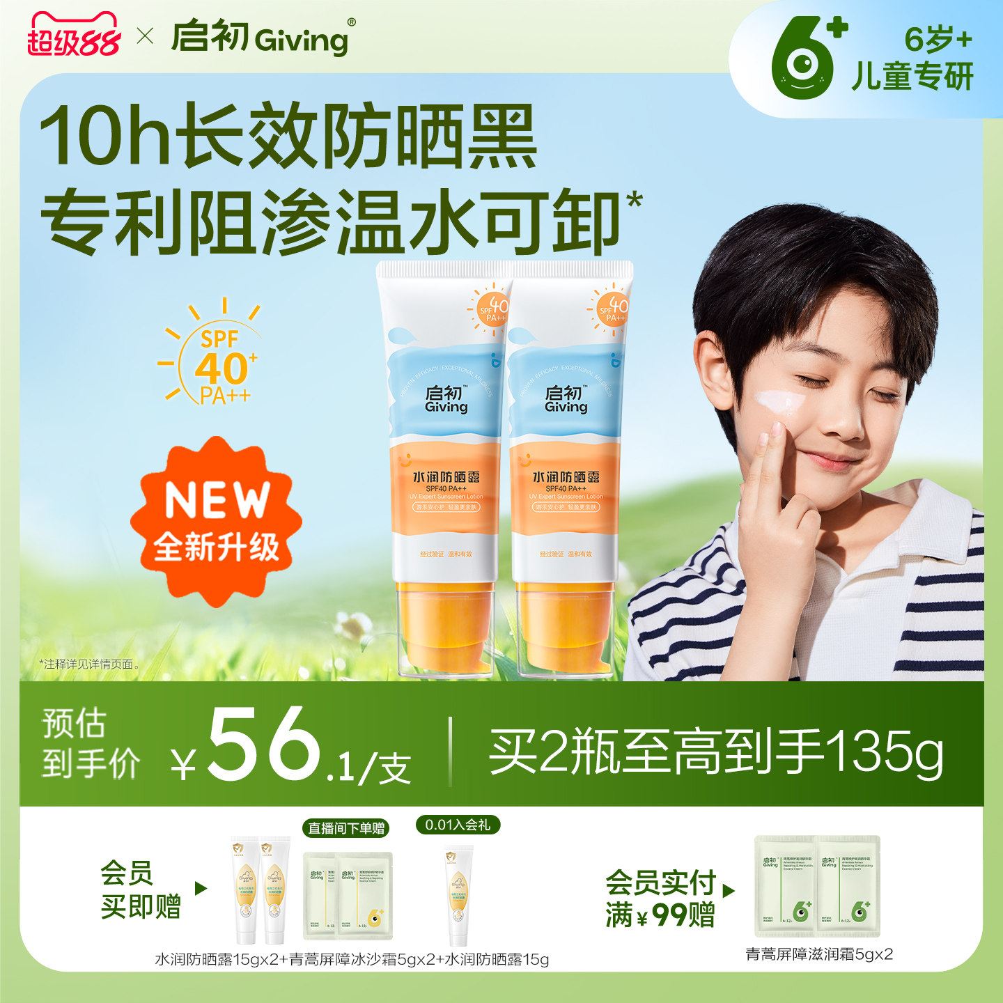 启初儿童防晒霜15g 拍2支 12.7元好单发报员2026年04月02日 13:320举报 6.3/支 启初儿童防晒霜15g右上叠金币vip拍2支12.7元!https://m.tb.cn/h.i9MHiA4SPF40 夏日必备儿童防晒保湿 舒缓 防晒 水润不油复制文案