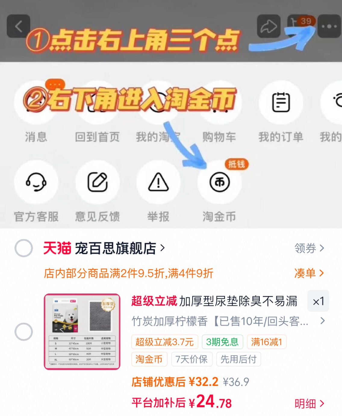 右上角[ ]-点"淘金币