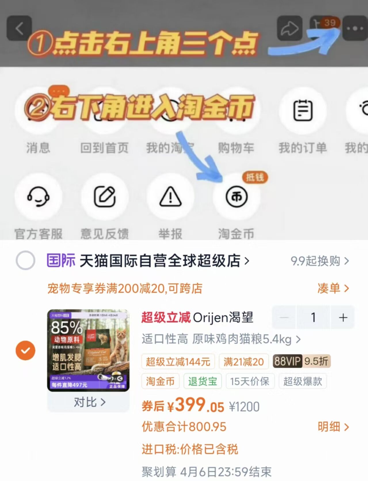 右上角[ ]-点"淘金币