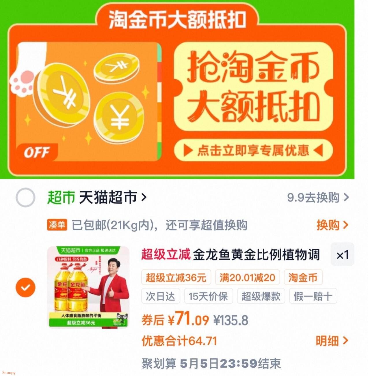 速琻龙鱼黄金比例调和油4L*2桶 71元好单发报员2026年04月03日 11:430举报 速 琻龙鱼黄琻比例调和油4L*2桶下拉详情拍下71元 黄琻营养比例吃得健康又安心https://m.tb.cn/h.iPQcyLo复制文案