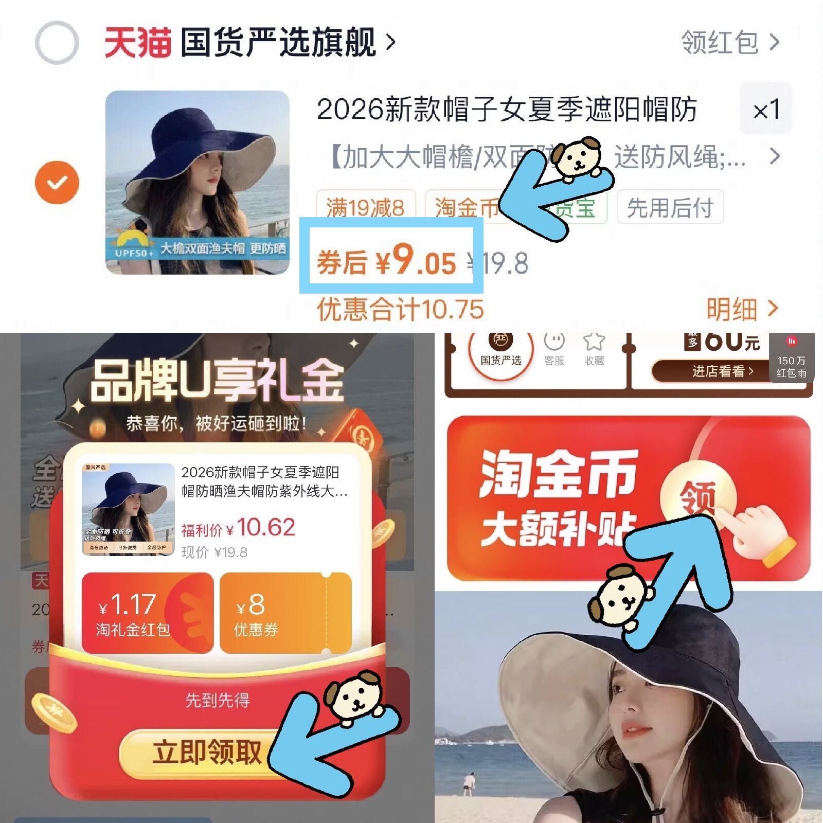夏季新款大帽檐防晒渔夫帽 9元好单发报员2026年04月03日 13:590举报 9元 需叠1.17淘礼金 下拉淘金币补贴圿格才对---夏季新款大帽檐防晒渔夫帽https://m.tb.cn/h.ikjZXc8防晒指数:竟然是UPF50 复制文案