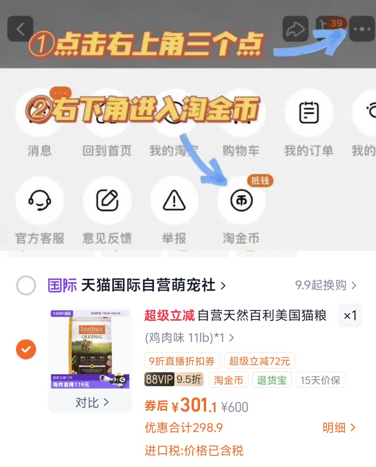 ②右上角[ ]-点"淘金币
