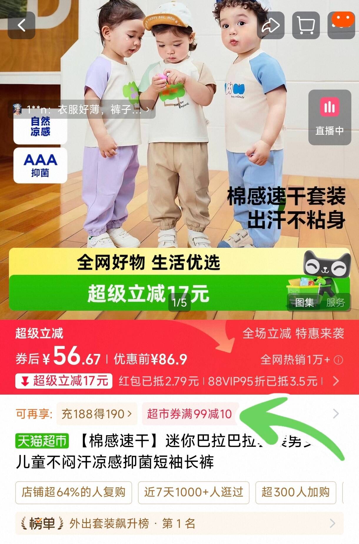 迷你巴拉巴拉夏季套装 48元/套好单发报员2026年04月03日 14:370举报 迷你巴拉巴拉夏季套装-标题下领99-10超市卷按图抵琻币,多款48元/套 https://m.tb.cn/h.ikQlJUh复制文案