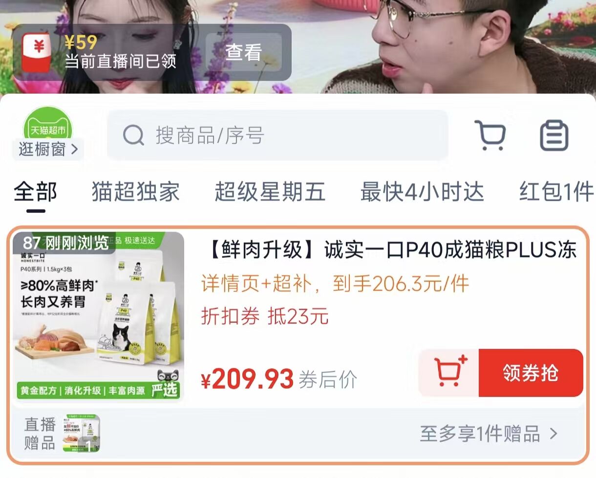 诚实一口P40鲜肉猫粮1.5kg*3