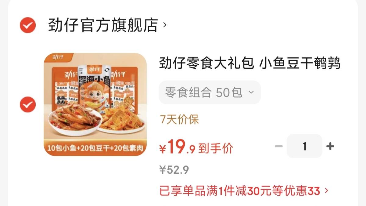 劲仔深海小鱼10包 豆干20包 素肉20包=50包 19.9元好单发报员2026年04月03日 18:150举报 劲仔 深海小鱼10包 豆干20包 素肉20包=50包19.9元!才折0.39一包 领http://jc.my22.info/jzkihIr拍https://u.jd.com/cax2MsZ复制文案