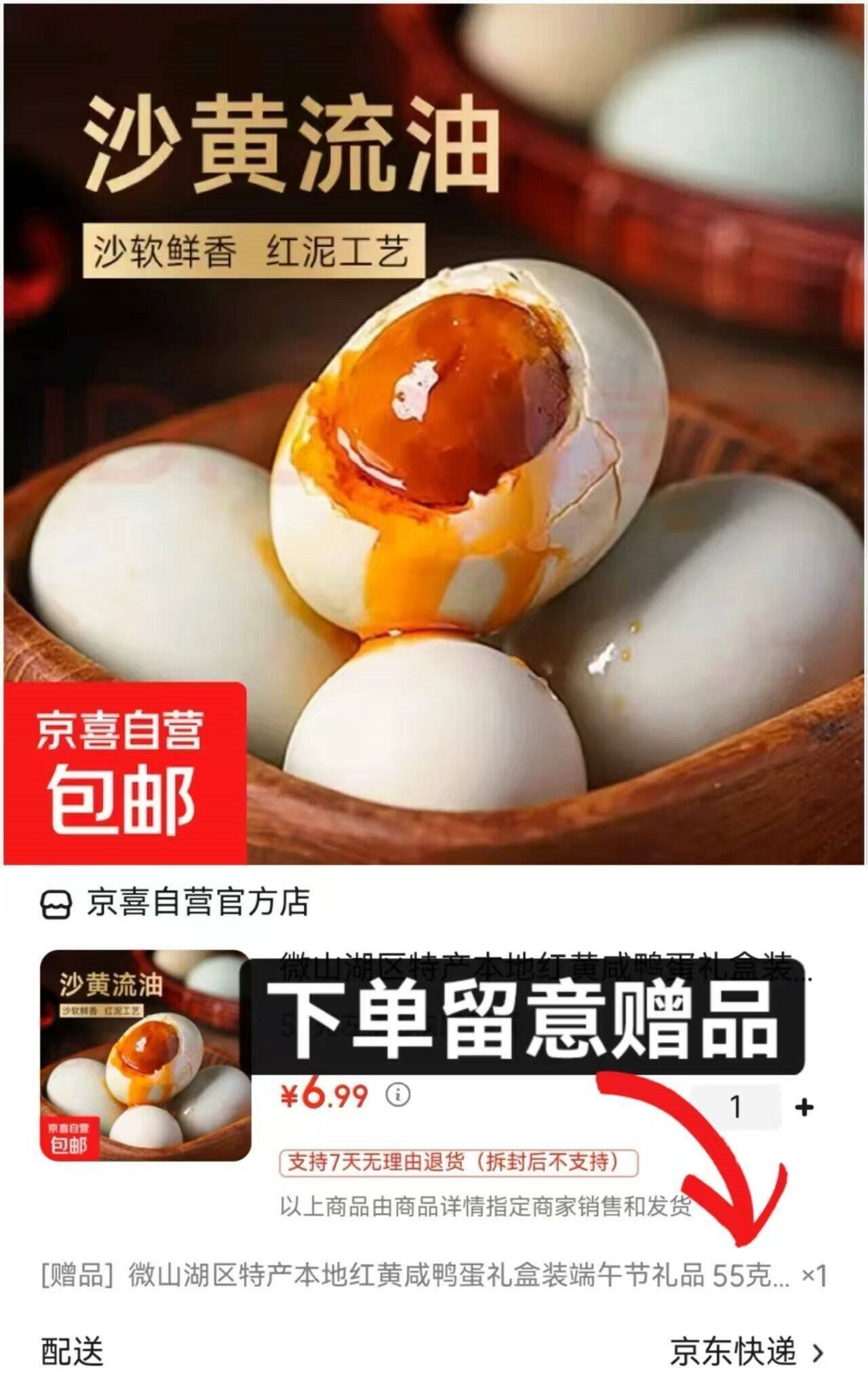 微山湖特产咸鸭蛋55g*10枚 6.9元好单发报员2026年04月03日 22:020举报 ——京喜自营买1贈1——微山湖区特产咸鸭蛋55g*5枚https://u.jd.com/c64SVEo 6.9元,到手10枚 才0.69/枚*个大流油 沙软鲜香 满满黄油复制文案