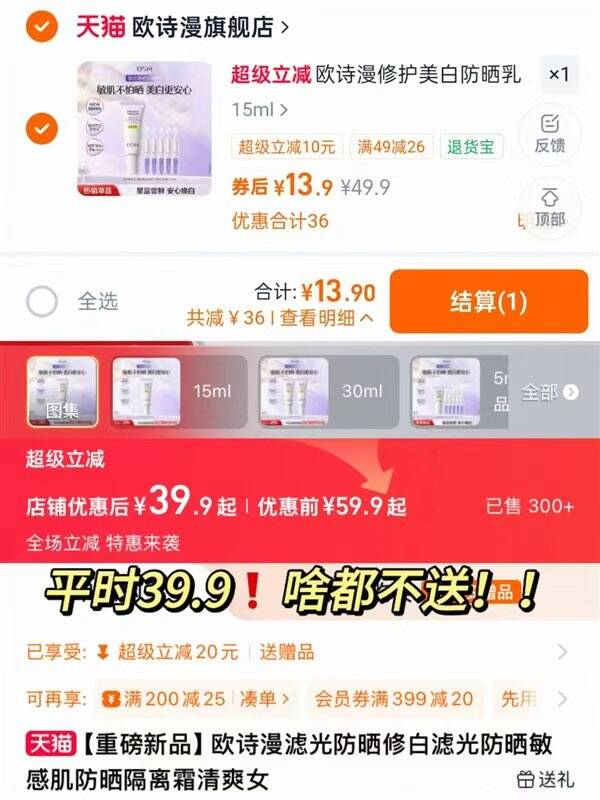 欧诗漫新品防晒 小白管精华*支 29.9元发报员Z2026年04月06日 08:490举报 快快 只要 . 直接拿下 欧诗漫新品防晒 还贈小白管精华 . * 支 白菜忦https://m.tb.cn/h.iP65clh复制文案