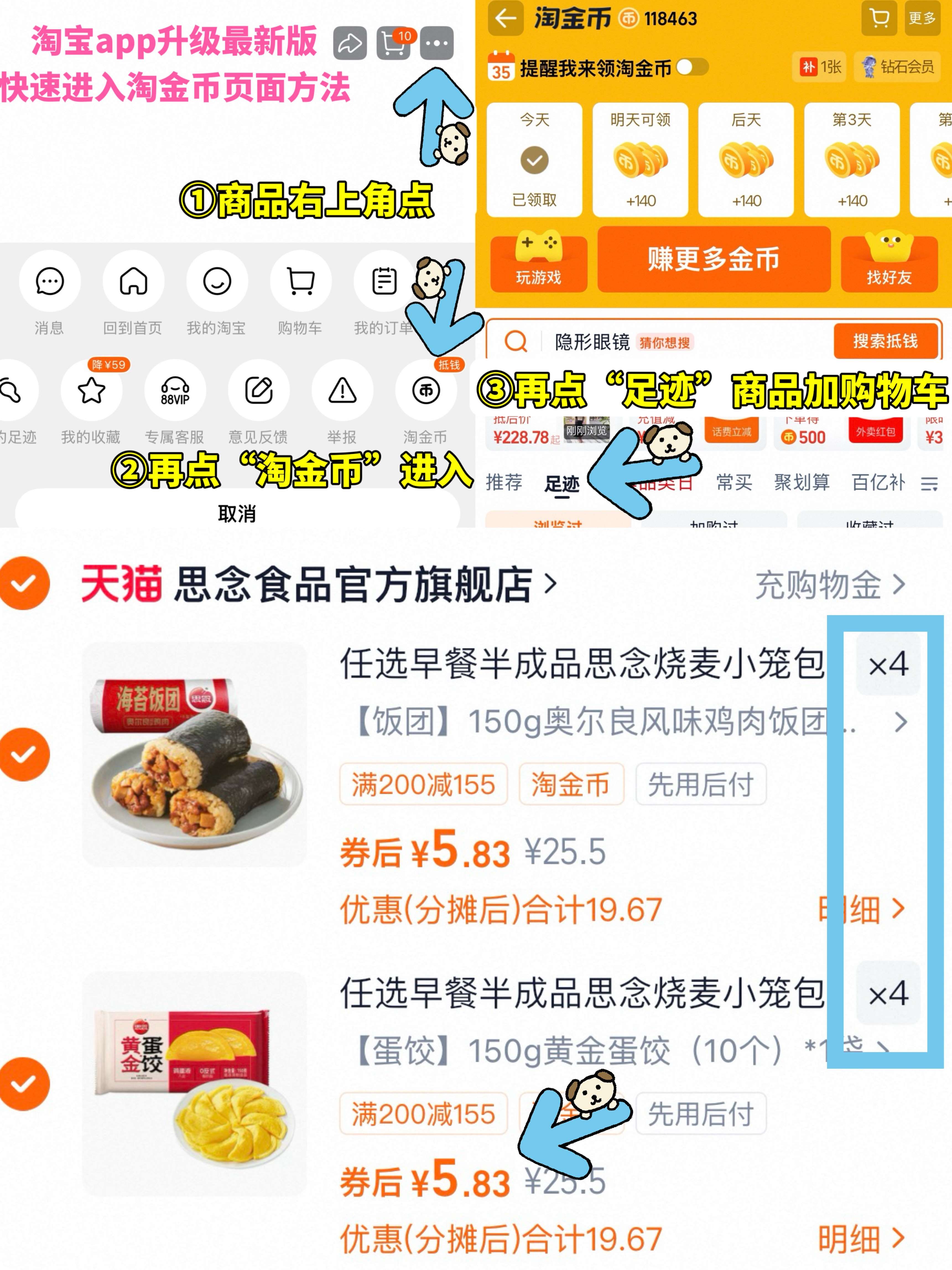 ①如图点右上角3个点,选淘金币