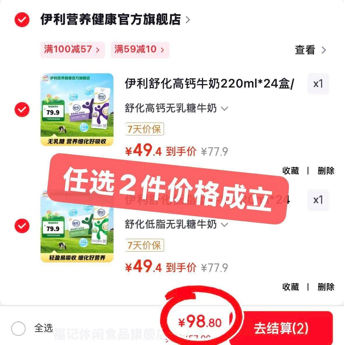 伊利舒化高钙/低脂220ml*24盒 任选2件98.8元发报员Z2026年04月06日 15:540举报 ——伊利舒化奶发車——伊利 舒化高钙/低脂220ml*24盒https://u.jd.com/jadIldW https://u.jd.com/jgtVvAA 任选2件98.8元,京仓发货*折2元/盒 新鲜日期 送礼也行复制文案