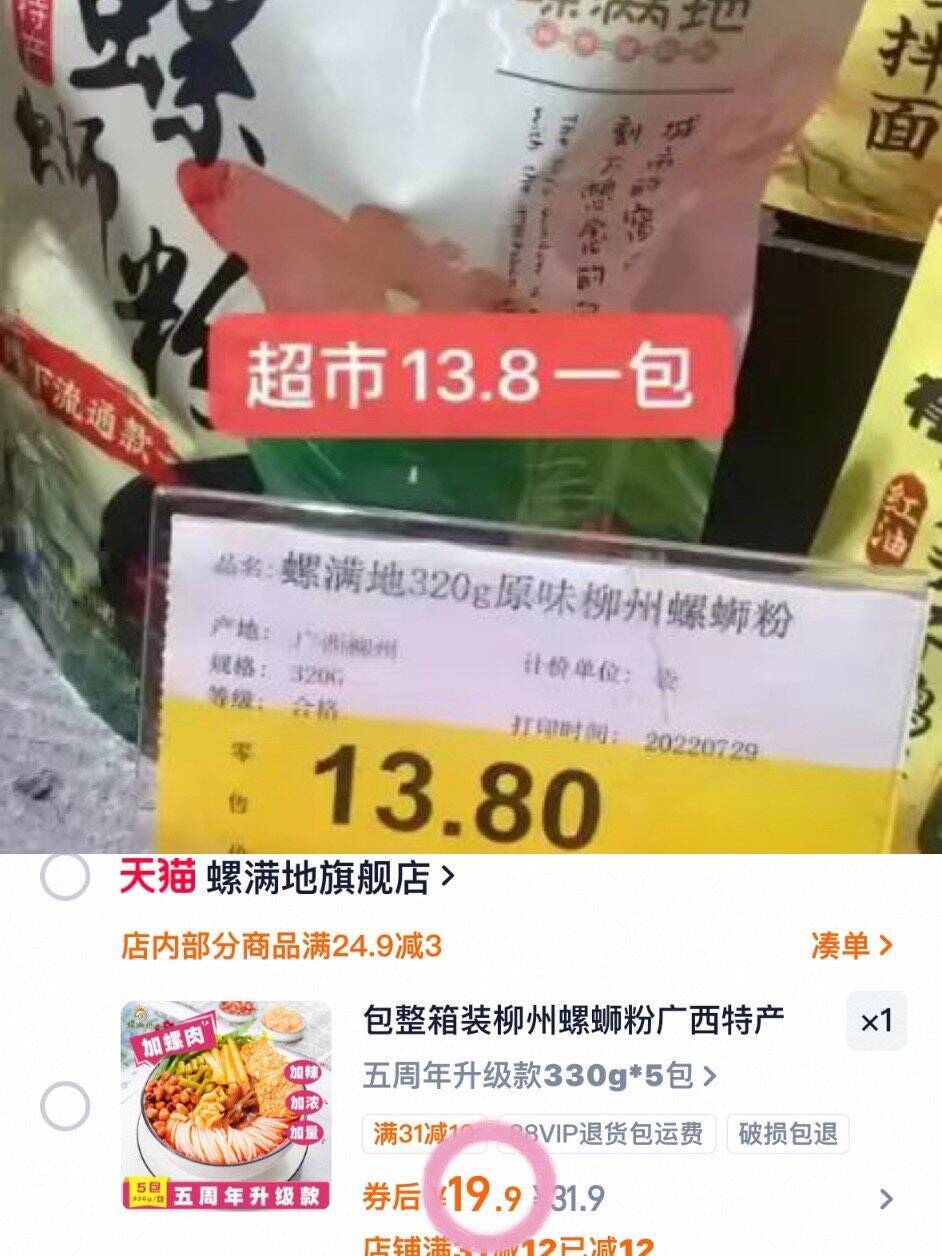 螺满地螺肉螺蛳粉330g*5包 19.9元发报员Z2026年04月06日 16:190举报 3.9/包 螺满地螺肉螺蛳粉 升级窾330g*5包19.9元浓汤配螺肉超过瘾 吃货冲https://m.tb.cn/h.ilvXeWZ复制文案