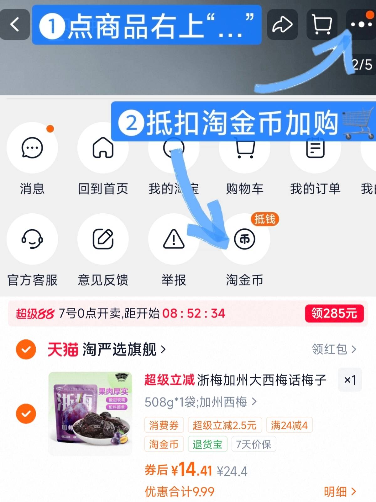 浙梅加州大西梅508g14.4元