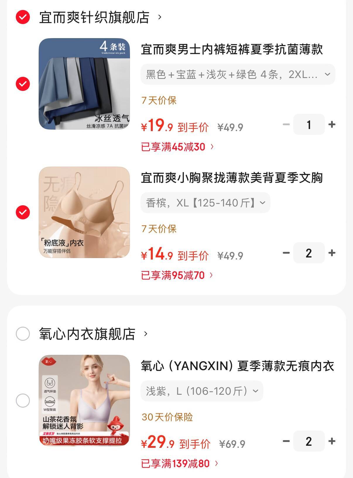 宜而爽 女无痕文胸 选2件29.8元