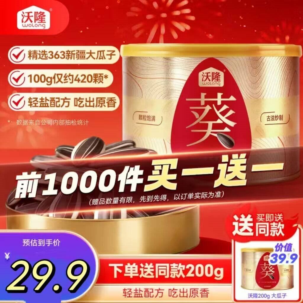 沃隆原味大瓜子葵花籽200g 29.9元发报员Z2026年04月06日 19:370举报 ——沃隆买1贈1——沃隆 原味大瓜子葵花籽200ghttps://u.jd.com/j6dH2xe 29.9元 u,Plus28.4元包U复制文案