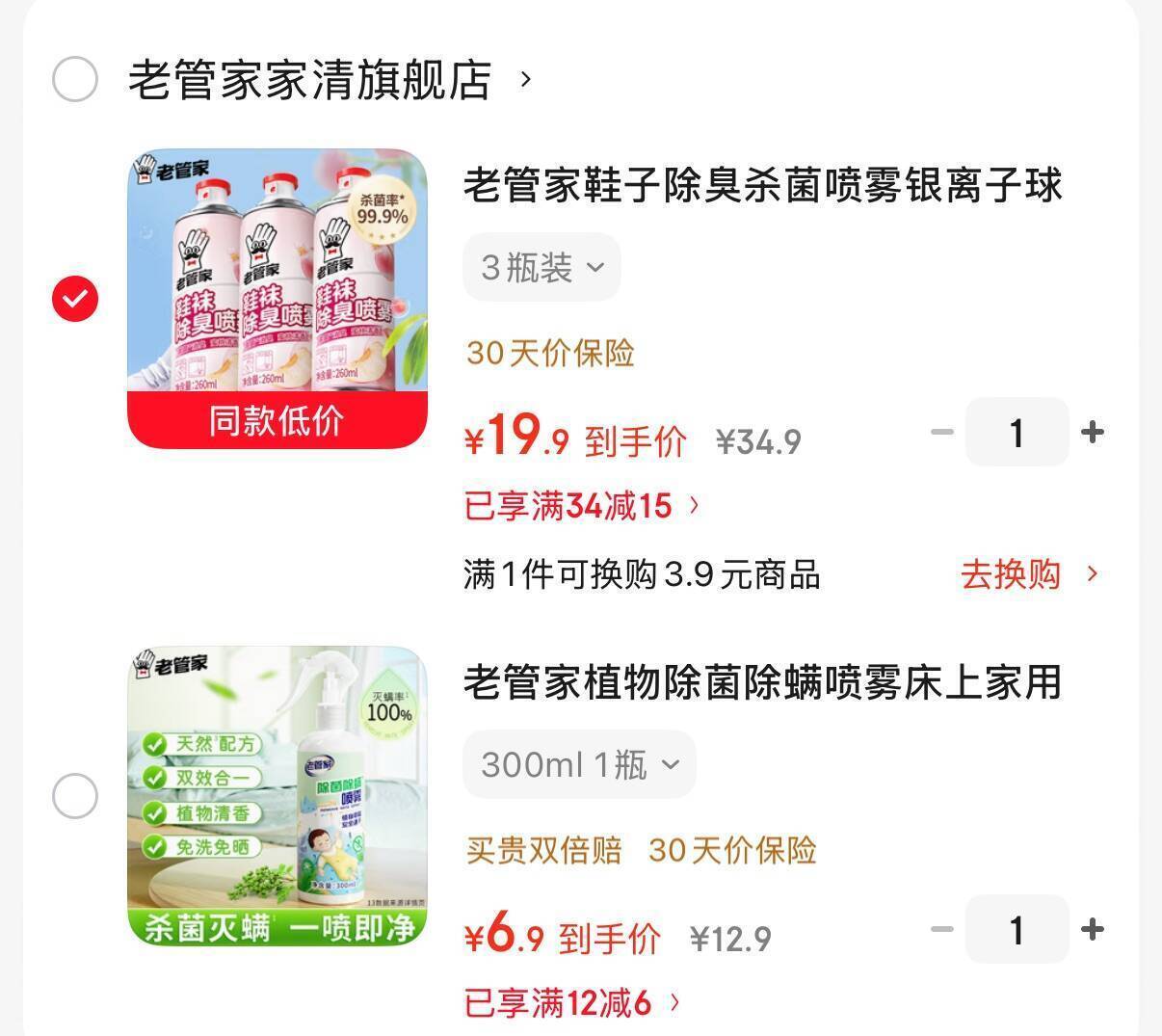 除菌除螨喷雾300ml/瓶6.9元
