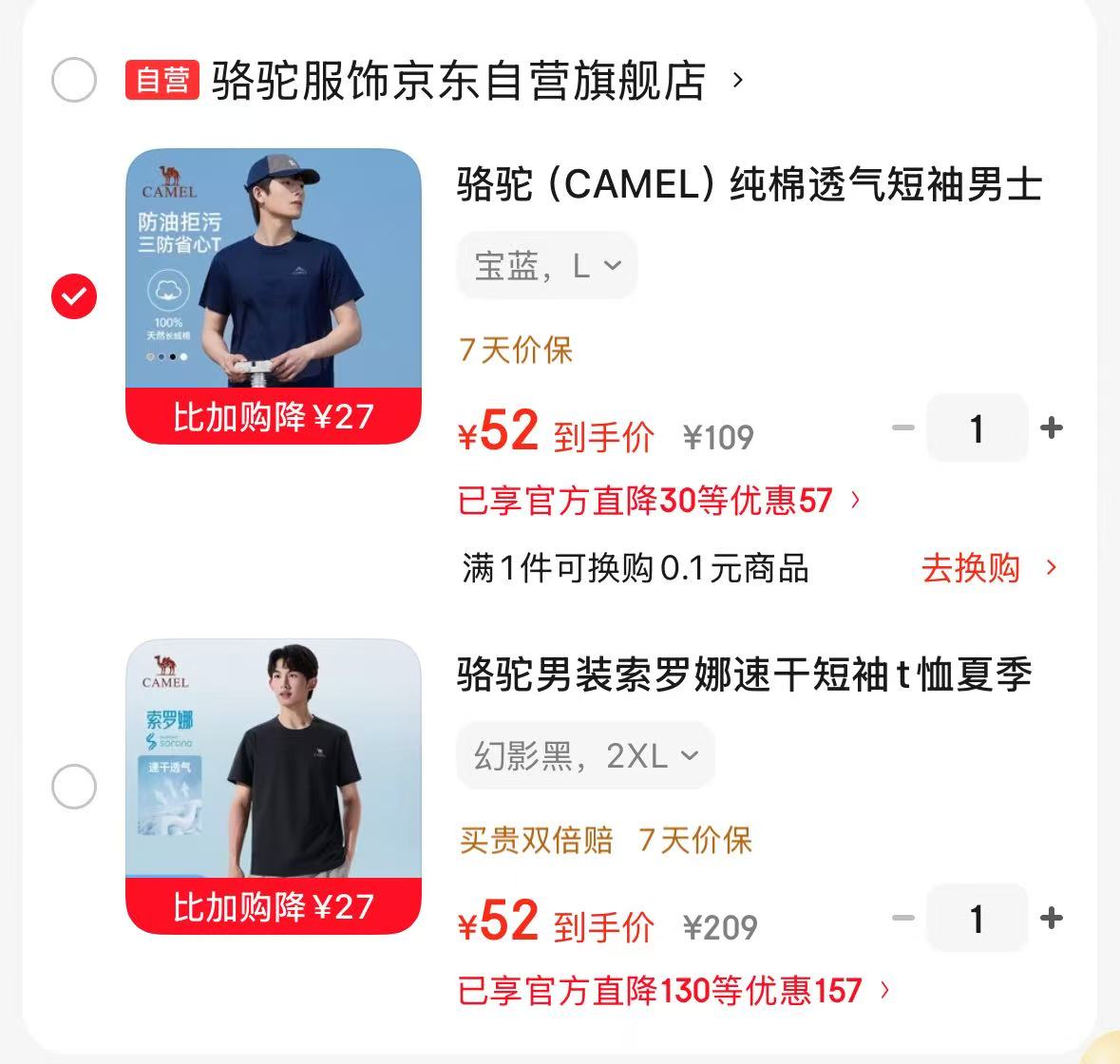 骆驼 纯棉透气短袖男士三防圆领【52】