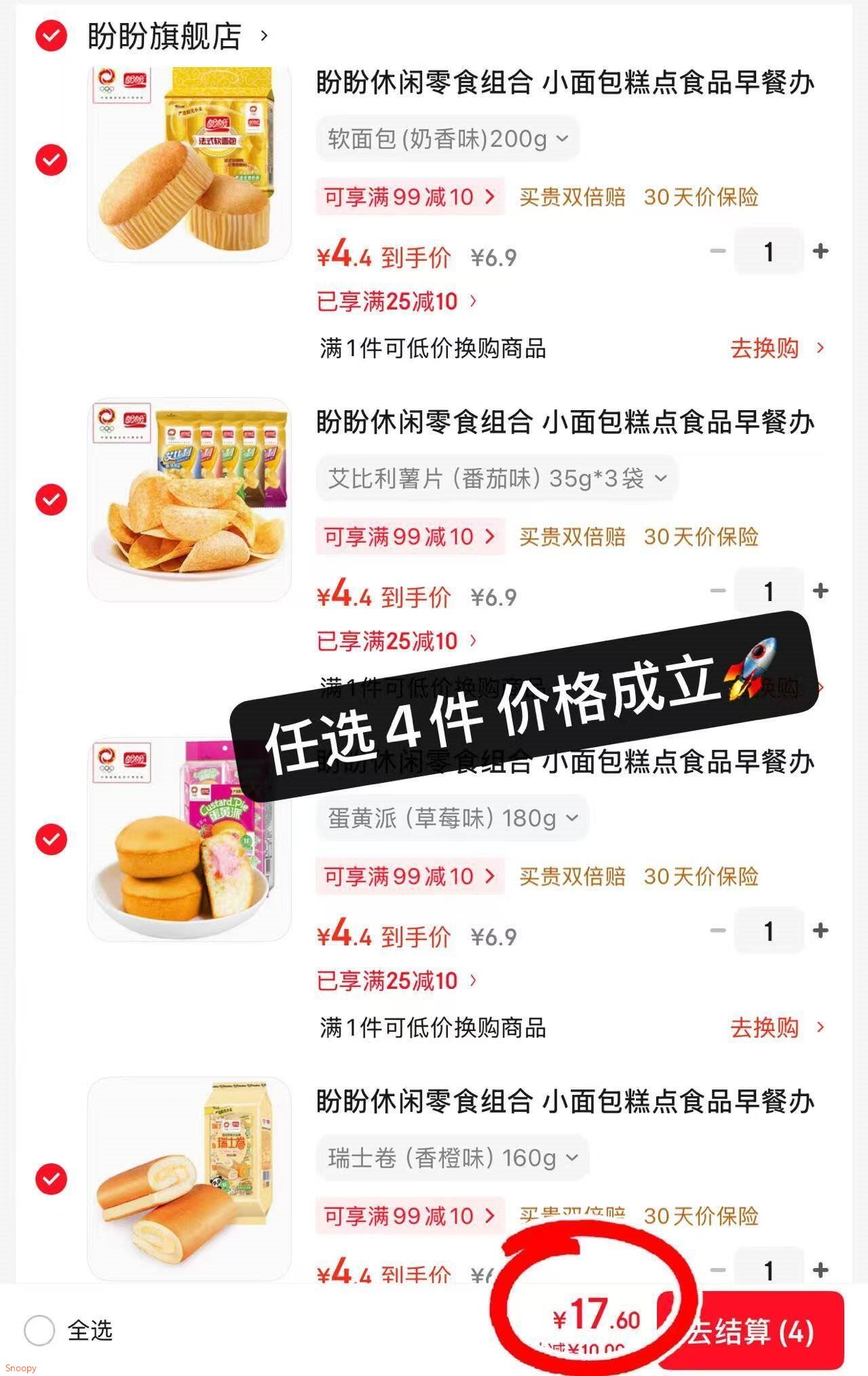 任选4件17.6元,折4.4元/件