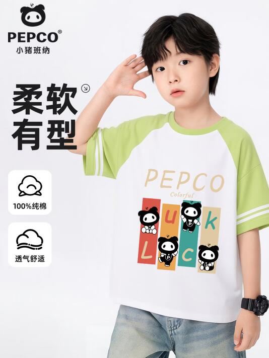 小猪班纳 儿童鸳鸯插肩袖短袖