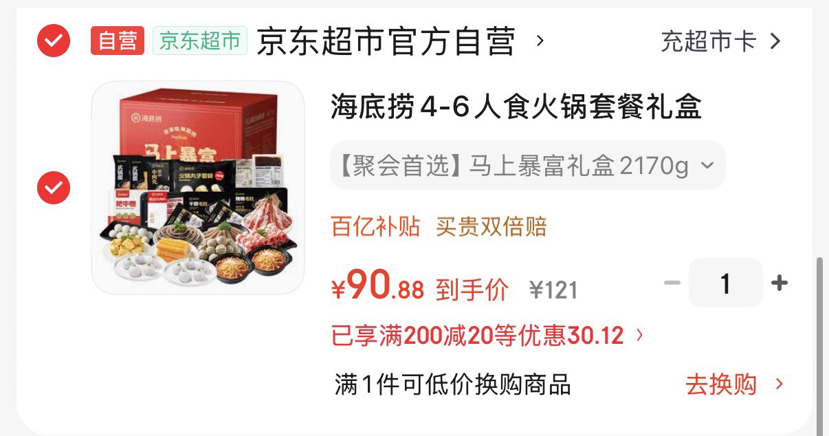 凑后90.8元 10荤2主食2底料