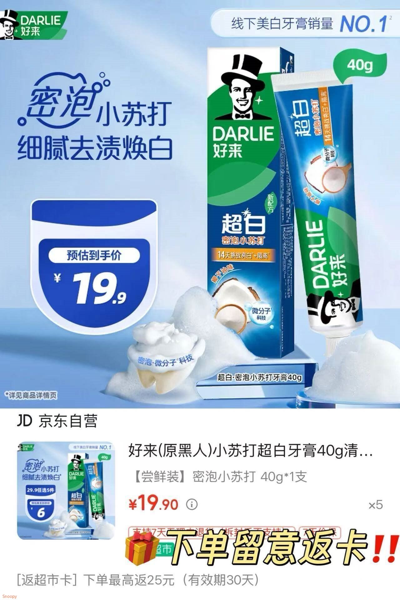 好来小苏打牙膏40g 买5件29.9元发报员Z2026年04月09日 20:560举报 —— 好来牙膏shen价——【自营】好来 小苏打牙膏40ghttps://u.jd.com/jrqq3Ax 买5件29.9元 U,新客减1元*反25元超市卡 低至0.9元/支复制文案